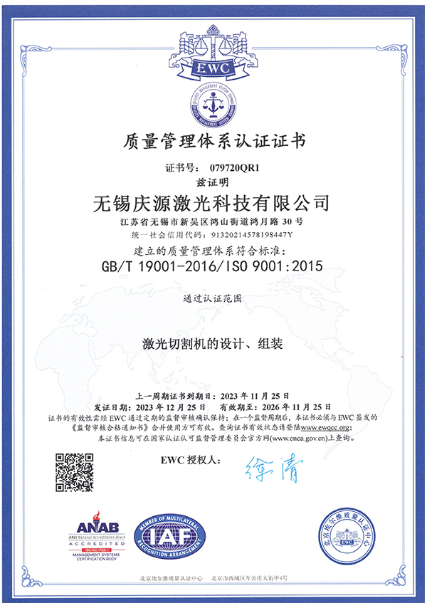慶源激光自成立以來,深刻把握激光行業發展趨勢,高度重視自主研發,不斷豐富產品和解決方案,努力拓寬市場界面,悉心打磨服務品質,堅持探索自動化、信息化、智能化與制造業的融合,圍繞“以精立業,以質取勝”的經營理念,不斷完善產品品質,深得廣大客戶的信賴與支持!