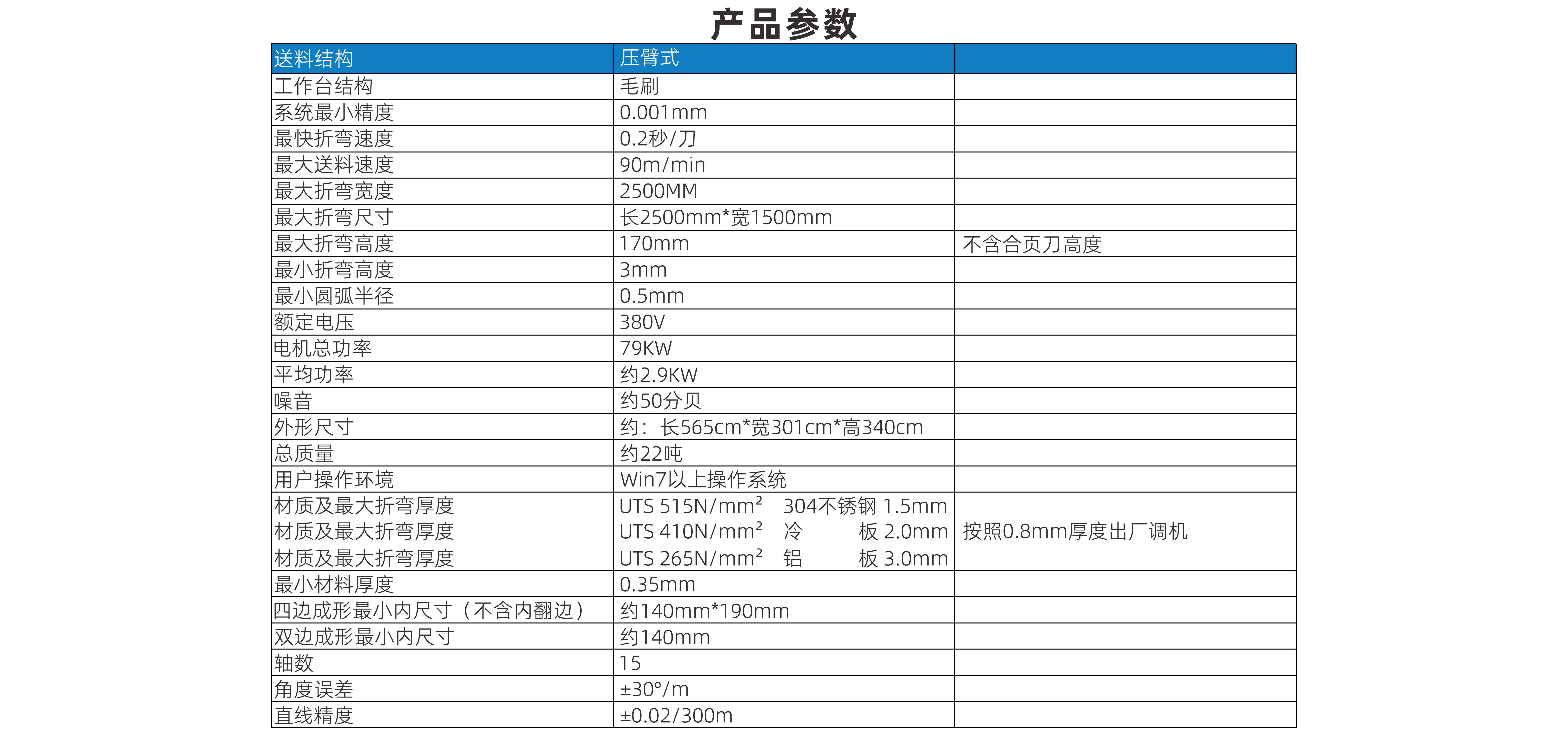 材質(zhì)及最大折彎厚度